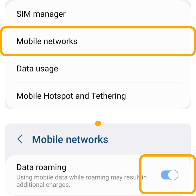 | ▸ | Toggle on your ‘Data roaming’ |