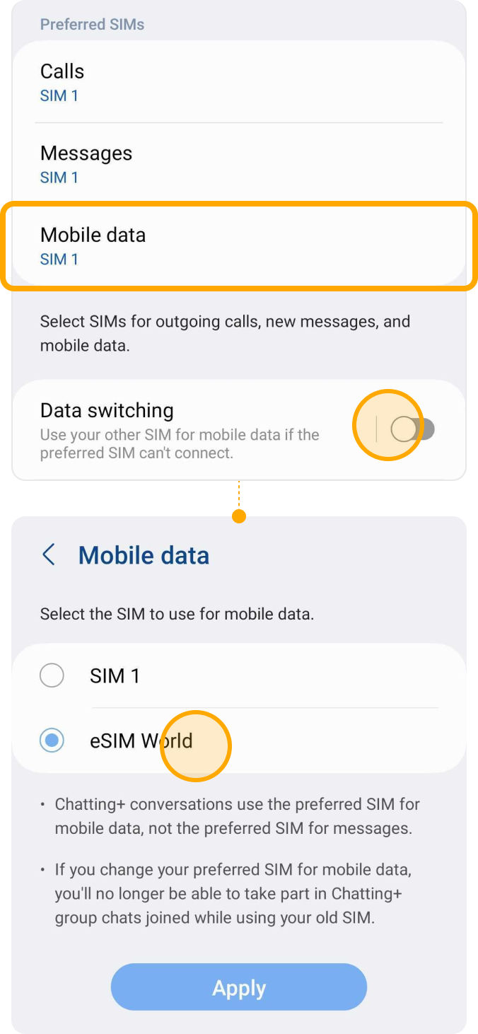 | ▸ | Select your eSIM |