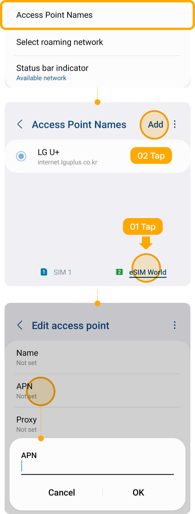 | ▸ | Choose [Access Point Names] Try clicking on [Advanced] if it’s not visible. Tap on your eSIM in the bottom tab. |