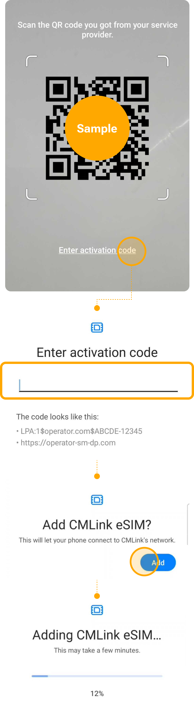 ! Be connected to a strong WiFi to activate an eSIM successfully.