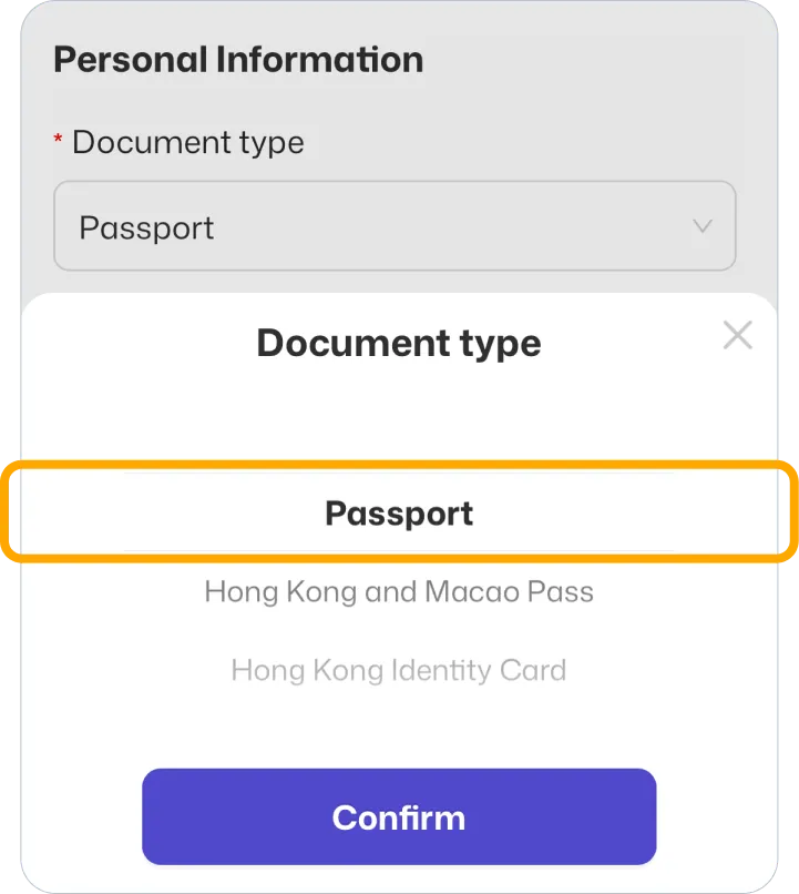 Select “Passport” and click confirm.